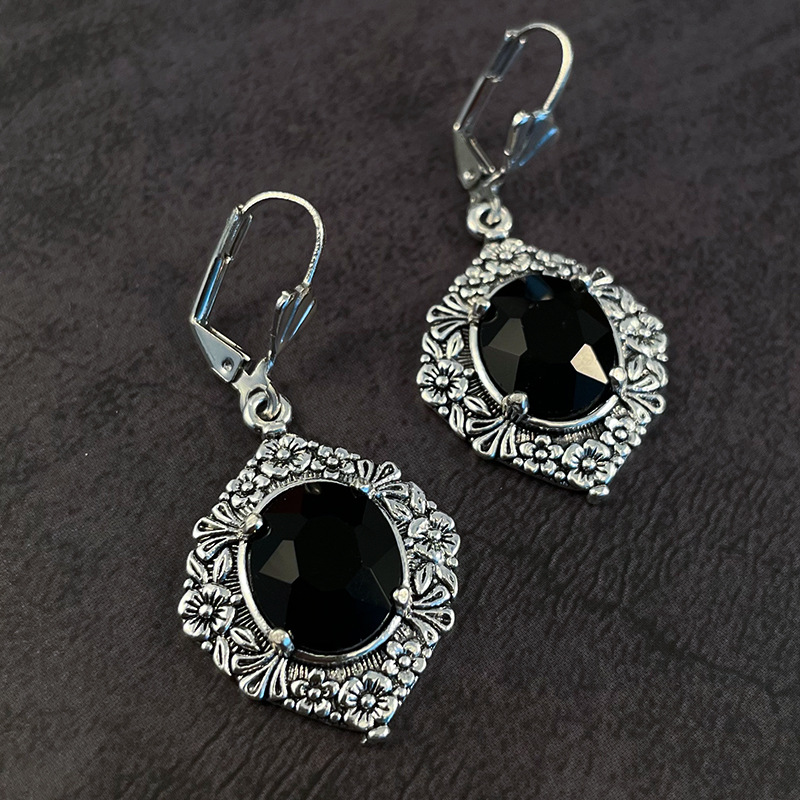 クロスボーダー欧米热い贩売クリエイティブレトロ黒い宝石ペンダントイヤリング女性パーティー个性耳饰り卸売