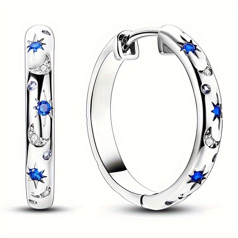 国境を越えた欧米の人気シンプルな銀色の輪イヤリング青い星月ジルコンイヤリングファッション耳輪