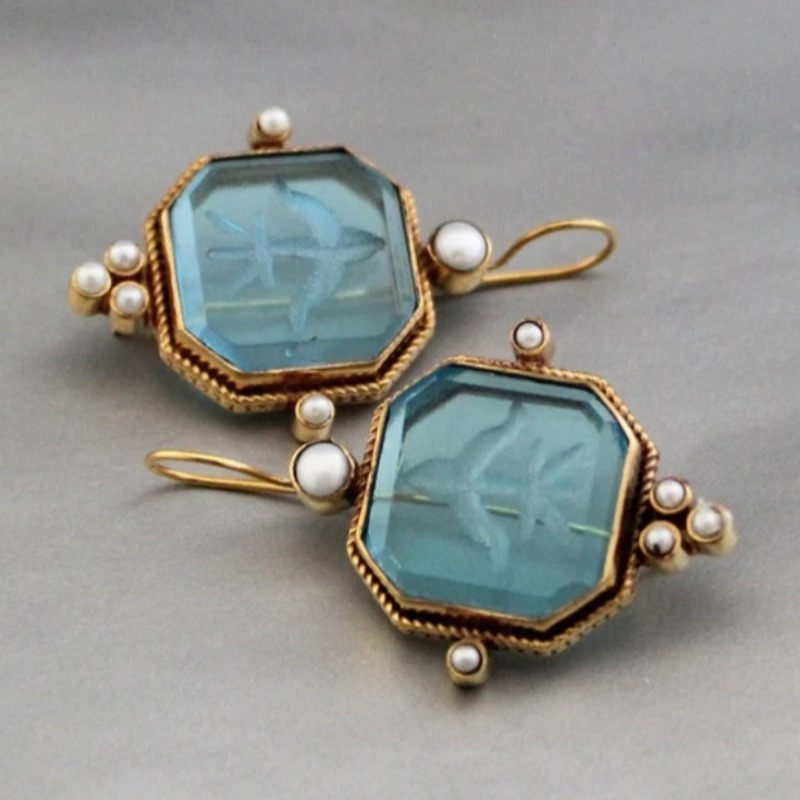 国境を越えた新しい六角形の緑水晶石耳たぶに真珠をはめ込んだ欧米のレトロなイヤリングファッション通勤耳飾り