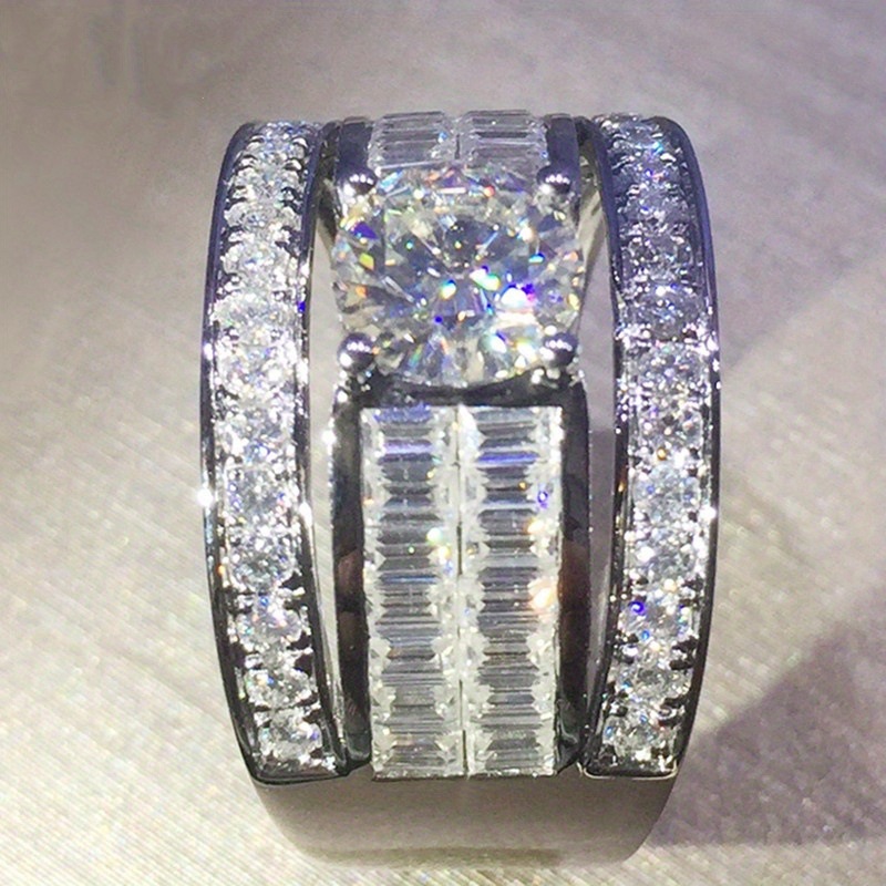 欧米の創意新商品の黄金の白い緑のジルコニウムのダイヤモンドの円形のシンプルで清新な大気の3つのセットの指輪