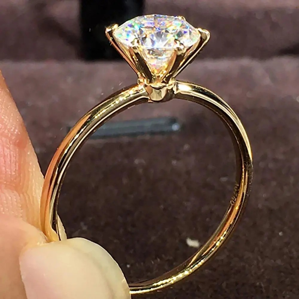 ファッションの経典の簡単な六爪の莫桑石の指輪の女性の銅はジルコンを入れて婚約して結婚指輪のメーカーの卸売りを求めます。