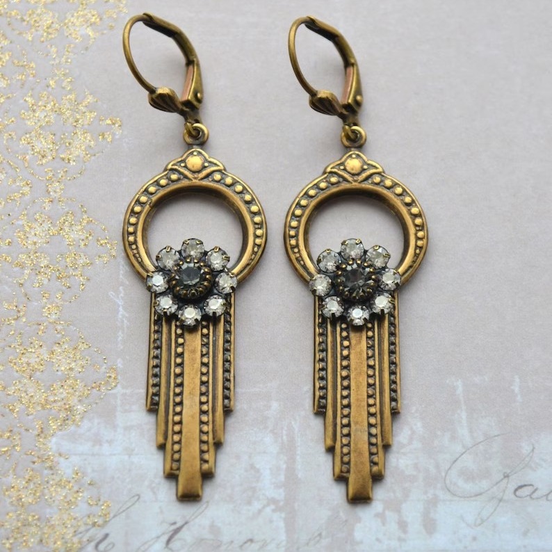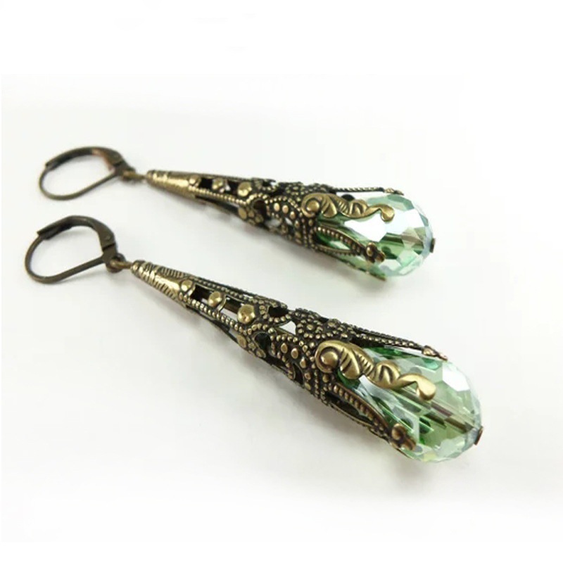 Wish熱売新商品のロングイヤリングアクセサリー通花レトロ贅沢グリーンオーストリア水晶イヤリング