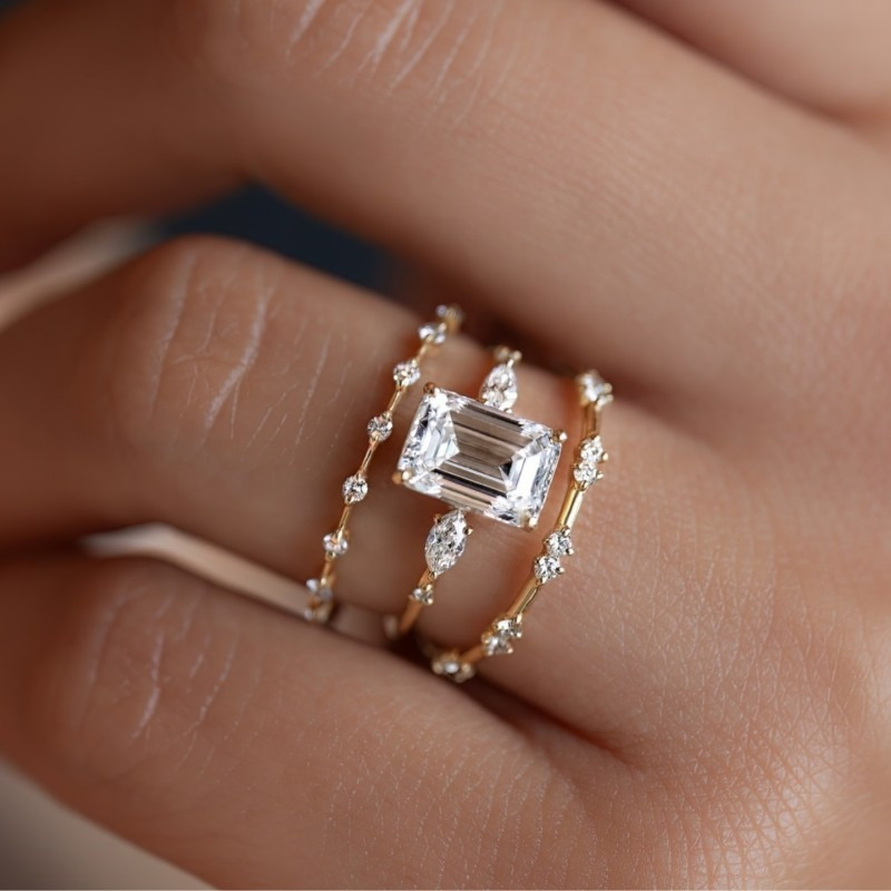 ヨーロッパとアメリカのクロスボーダー願い幾何学的なジルコンリング女性の絶妙なリング 4 点セットライト高級ハイエンドジュエリー