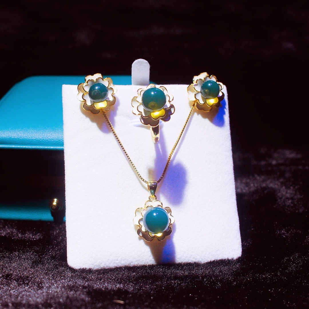 7-8-9mmメキシコブルーパーS925銀茶花セットアクセサリー滴ゴム景泰青工芸工場直ロット