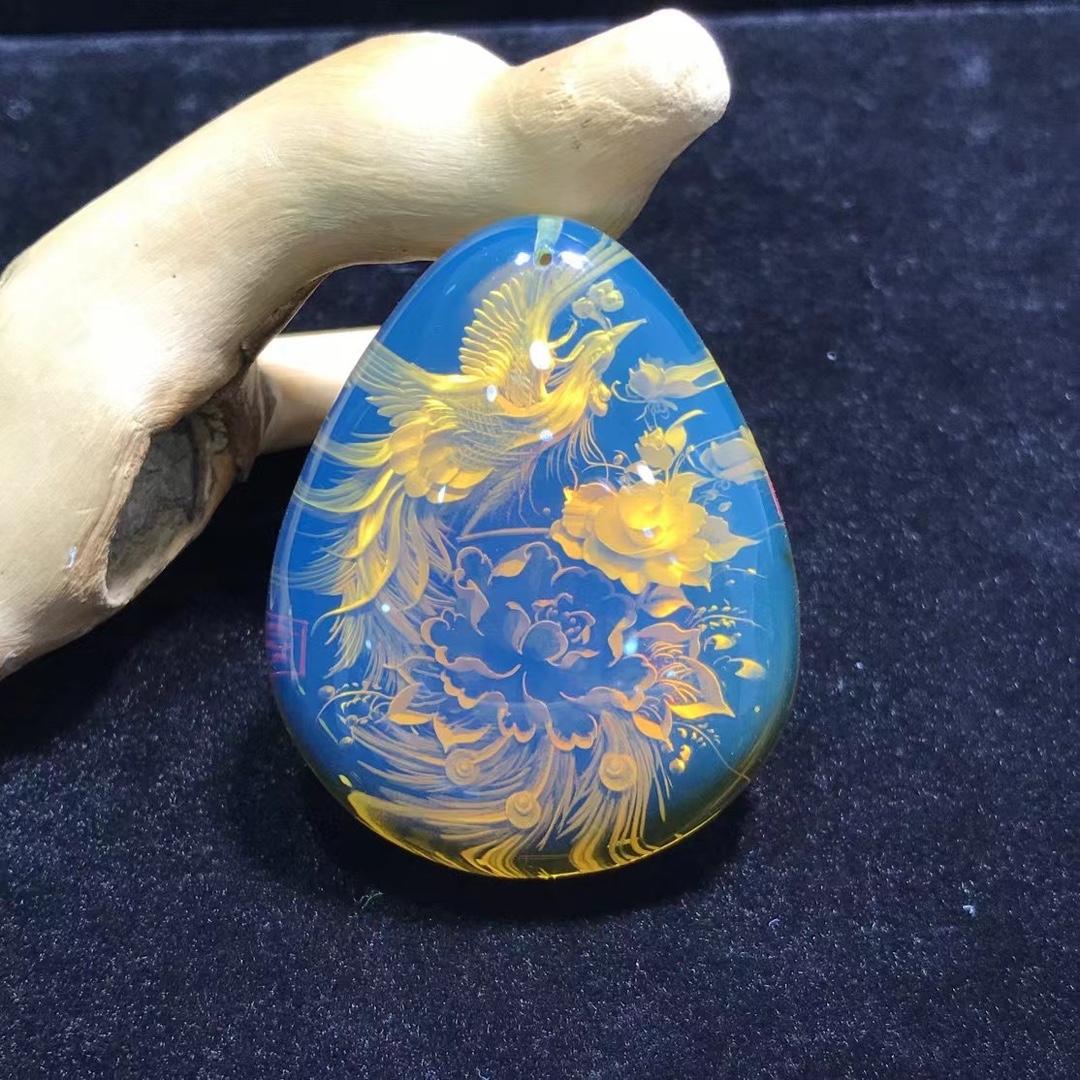 鳳劇牡丹10-20gメキシコブルーパー高品質彫刻品逸品ペンダントマスターコレクション証明書