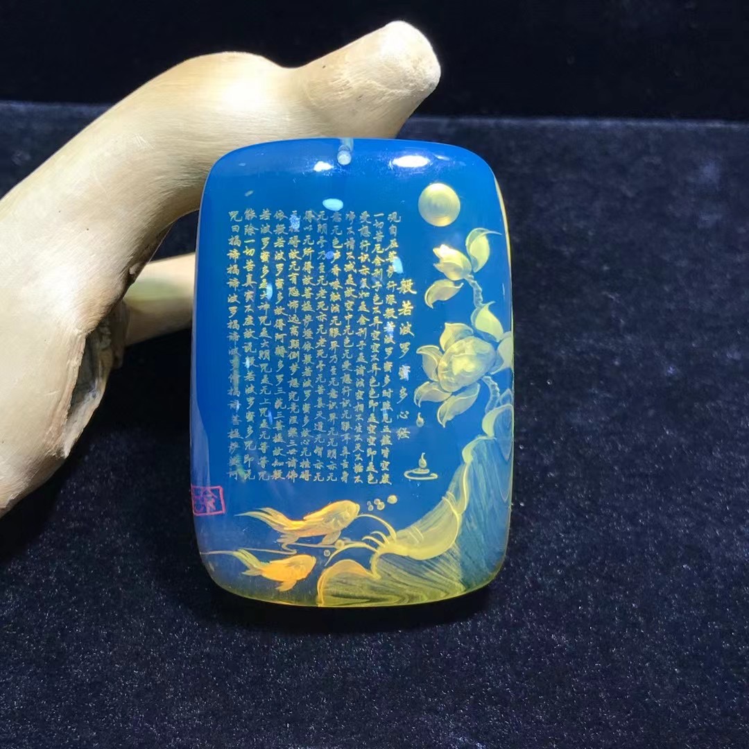 般若波羅蜜心経10-20gメキシコブルーパー高品質逸品彫刻件四方ブランドペンダント