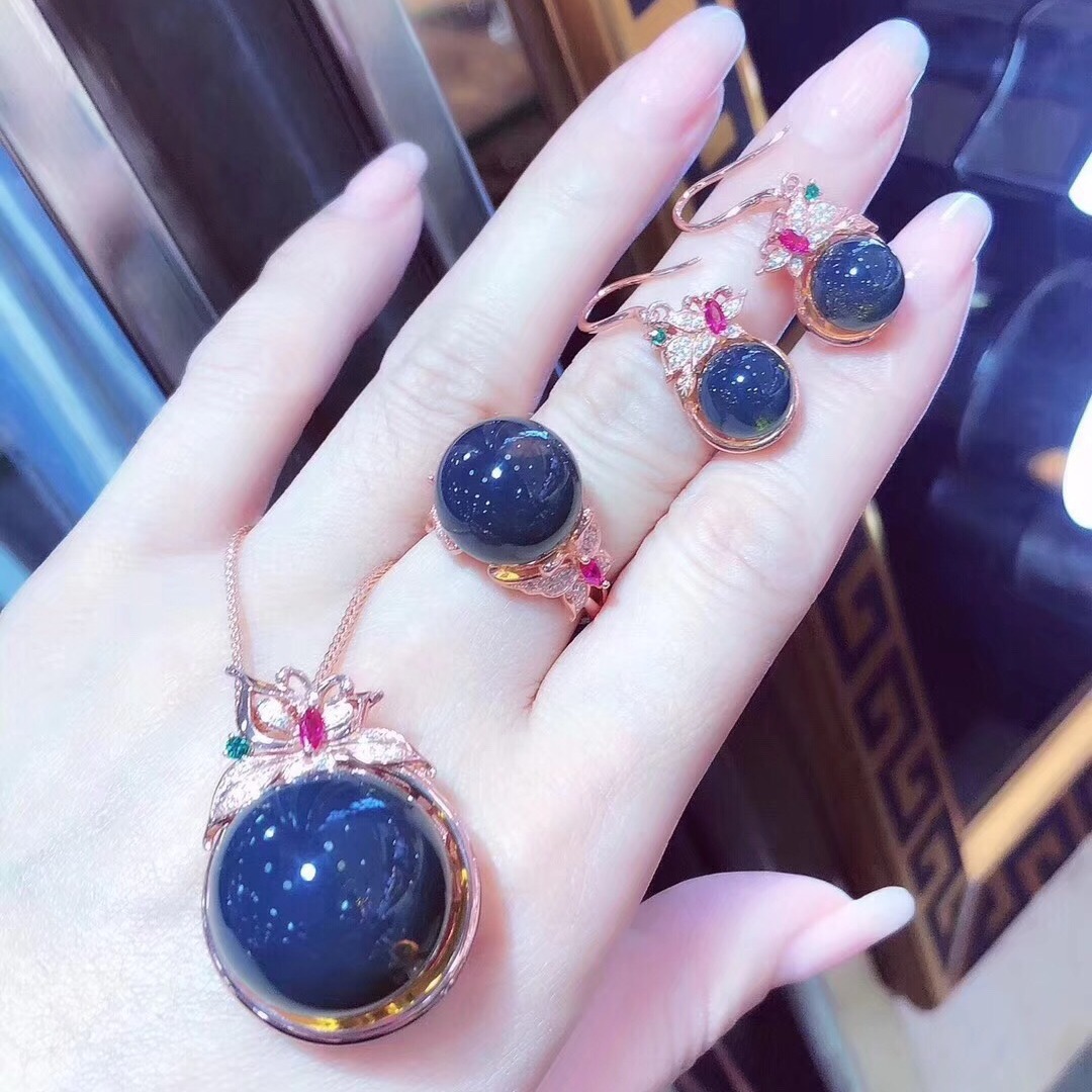 16mm天然ロシア材料鶏油黄蜜蝋精工モザイク18k金ペンダント全製品無焼き色最適化