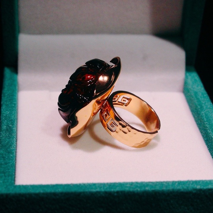 ヨーロッパの天然浄水血パー彫刻牡丹花純銀女戒純手作業で正味重量約14-15gを作ります。