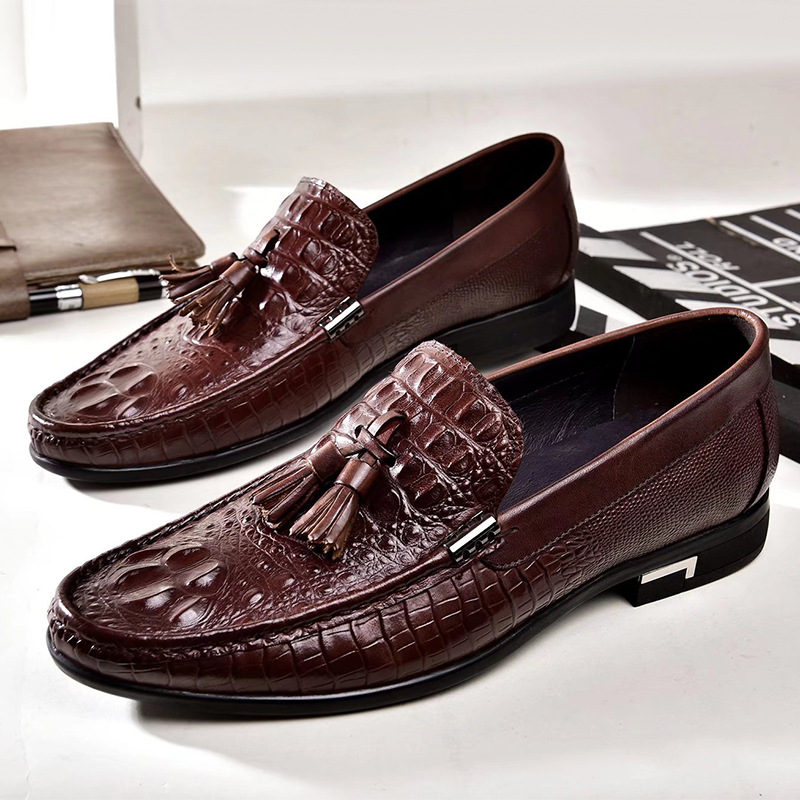 卸売夏通気性英国ビーニーシューズメンズクロコダイル柄カジュアルレザーシューズメンズスリッポンドライビングレザーメンズシューズ