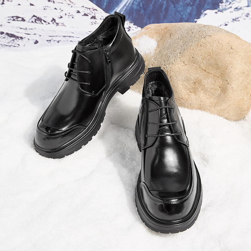 卸売り綿靴男毛皮一体冬保温ベルベット高助靴耐寒雪地靴ウール厚手ブーツ