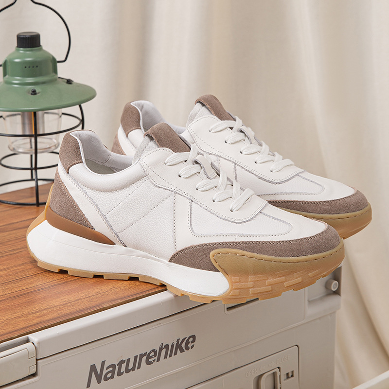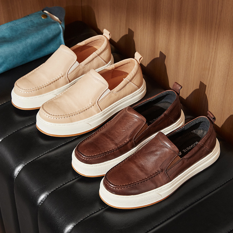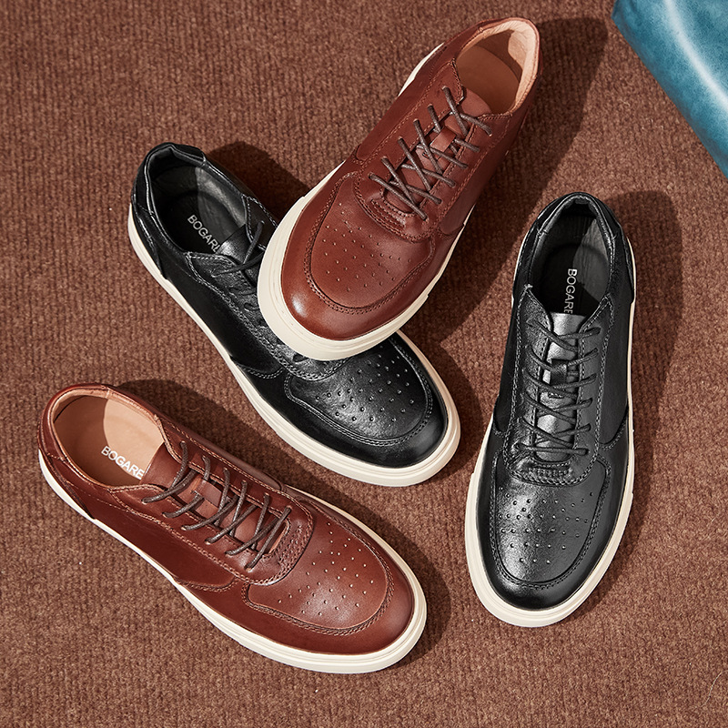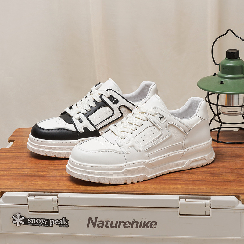 白靴の男性は、夏の通気性のある牛革のスポーツカジュアルシューズが高くなります。