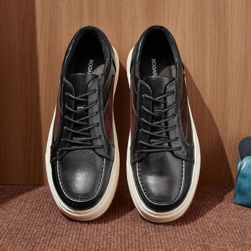 厚い底の男性のタイプのパンの靴は高くなってゴムの工芸の英倫の板の靴の青年の設計感の小さい大衆の本革の男性の靴をかけます。