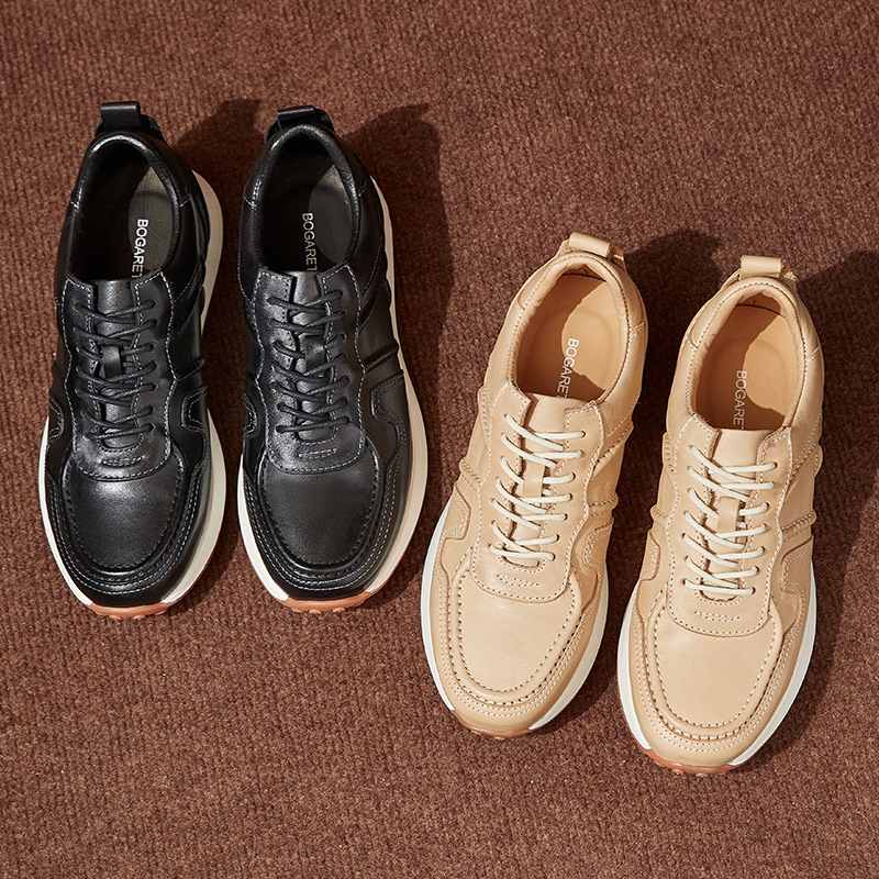 高級品スポーツカジュアルシューズ男性夏の通気性のあるトップの牛革には、白い靴の厚い底が高くなっています。