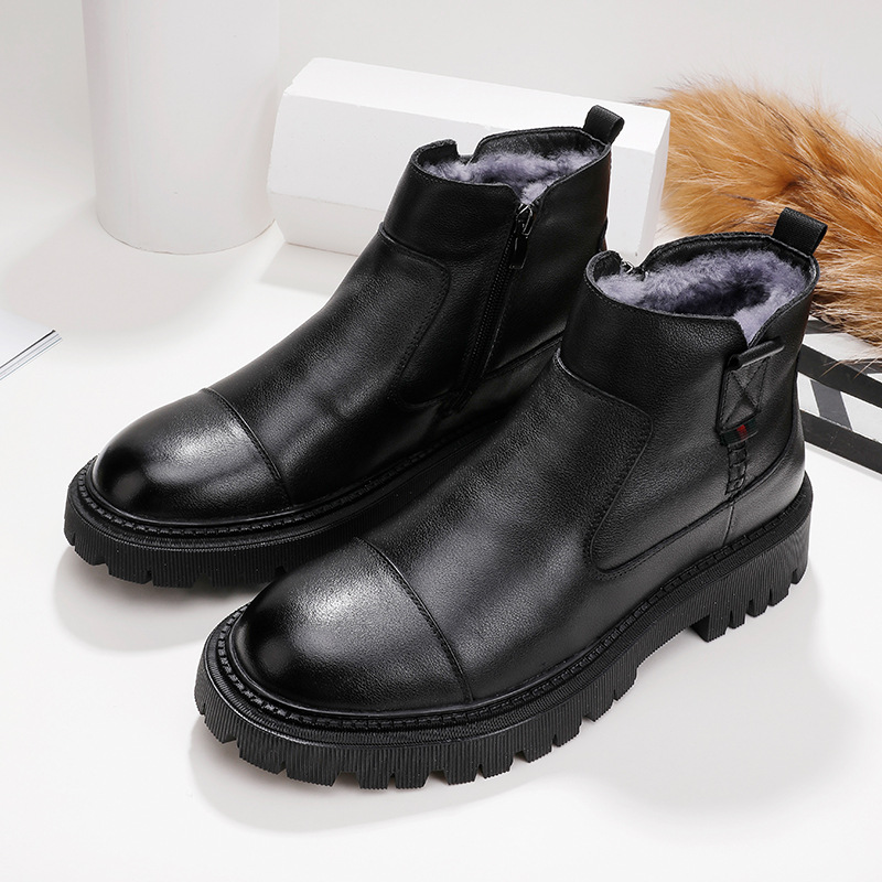 毛皮一体男靴冬保温ベルベット東北綿靴男本革雪地靴靴ワニ紋ショートブーツ