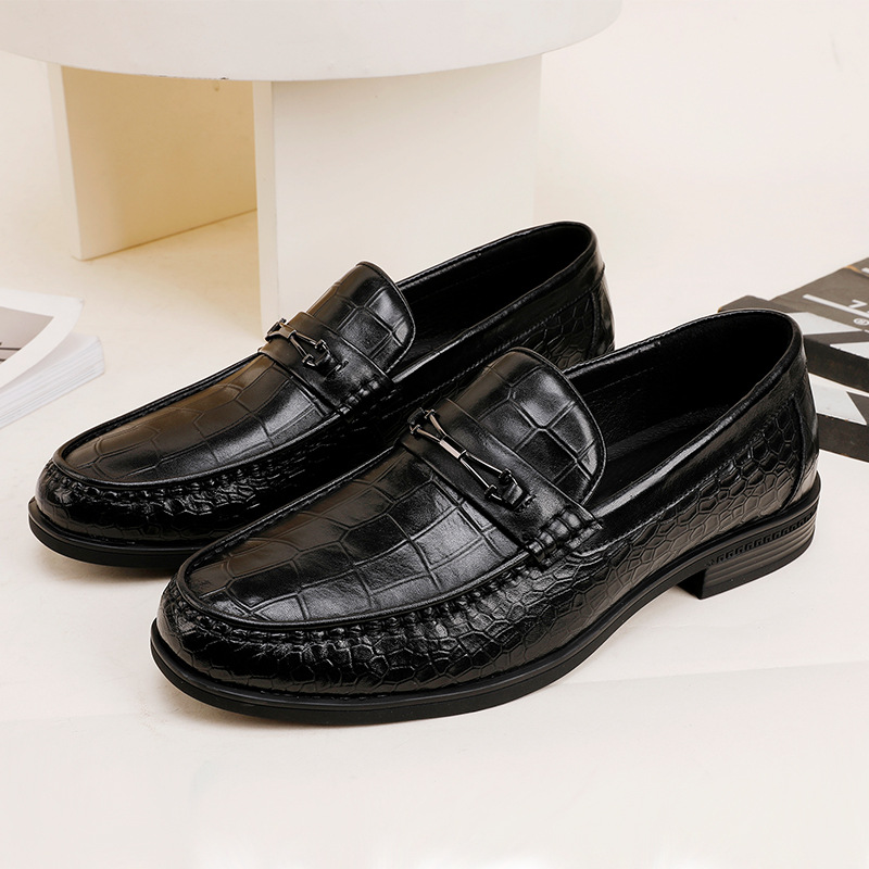 卸売り豆靴男真皮一足で男靴カジュアル革靴ワニ紋高級ソフト底怠け者の頭層牛皮