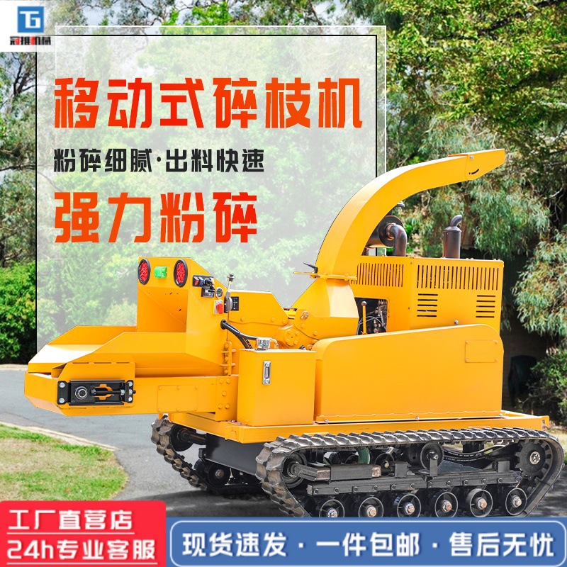 大型クローラ式木材破砕機破木機粉砕園林枝樹木粉砕機乾湿木材粉砕