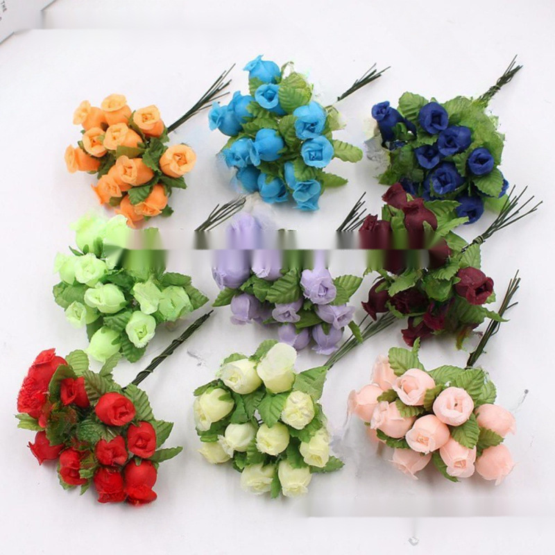 12 ヘッド/バンド造花シルクローズミニブーケ用