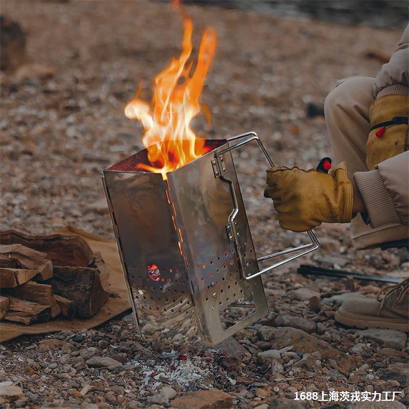 バーベキュー炭素引火桶保管多機能ストーブステンレス折り畳み引火桶点炭桶発火野外厚さ