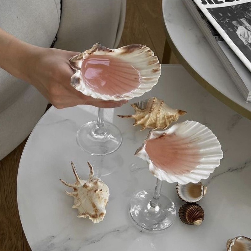 軽くて豪華な個性の天然のサザエの貝殻の高い足のガラスのコップの創意の杯は贈り物の装飾の置物を送ります。