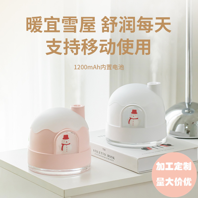 メーカーカスタムusb充電静音ミニデスクトップアトマイザー新商品雪屋夜灯補水加湿器