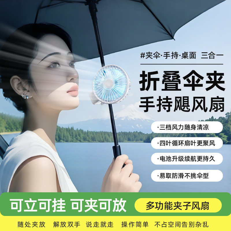 新型クロスボーダーUSBハンドヘルド傘クリップ小型扇風機 ミニポータブル充電式傘クリップ扇風機 寮のデスクトップ/屋外用