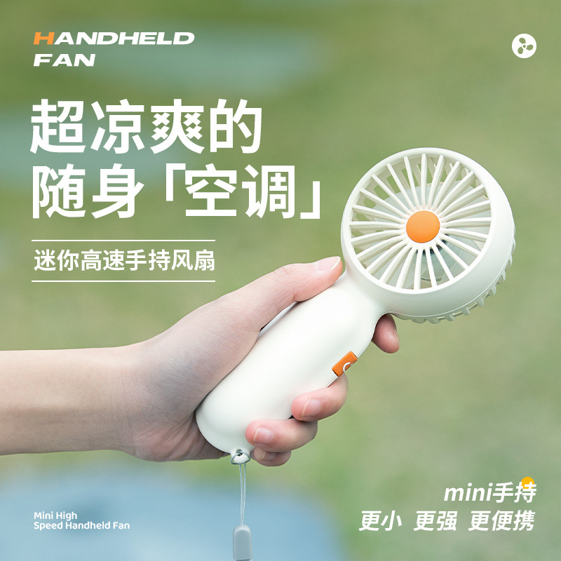 国境を越えた新しいハンドヘルド小型扇風機、強風、静音、屋外用ストラップ付き、ポータブルミニ充電式高速小型扇風機