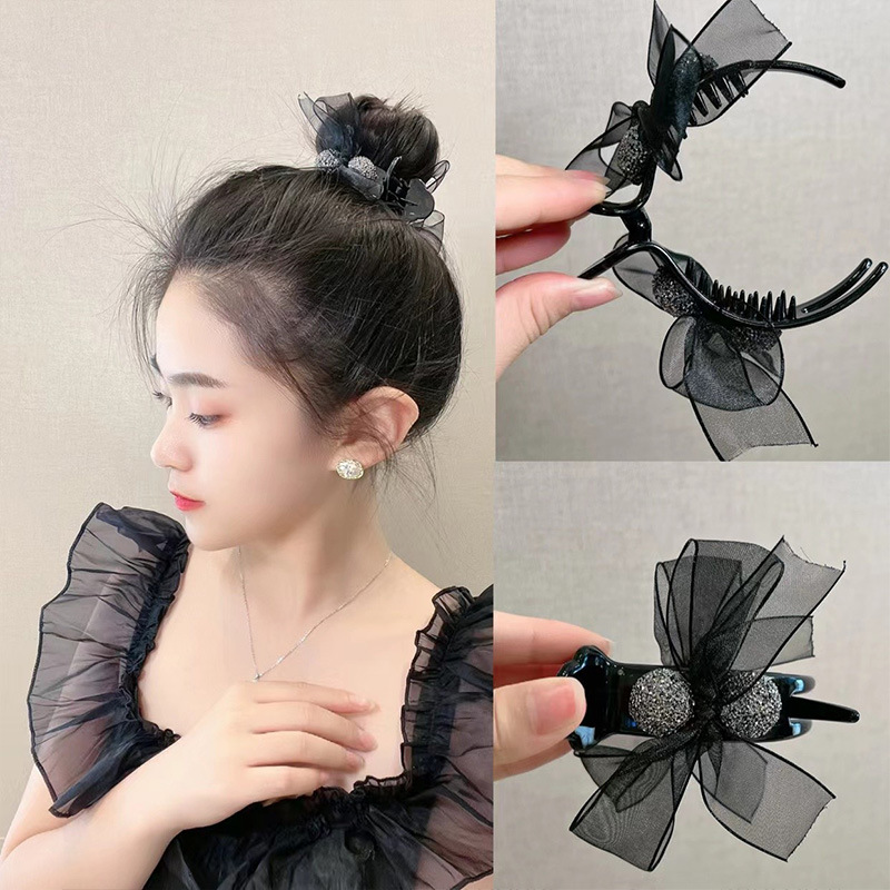 清風紗蝶結びバナナクリップ縦クリップ馬尾ヘアクリップ後頭部蝶結び頭飾り気質小清新横クリップ