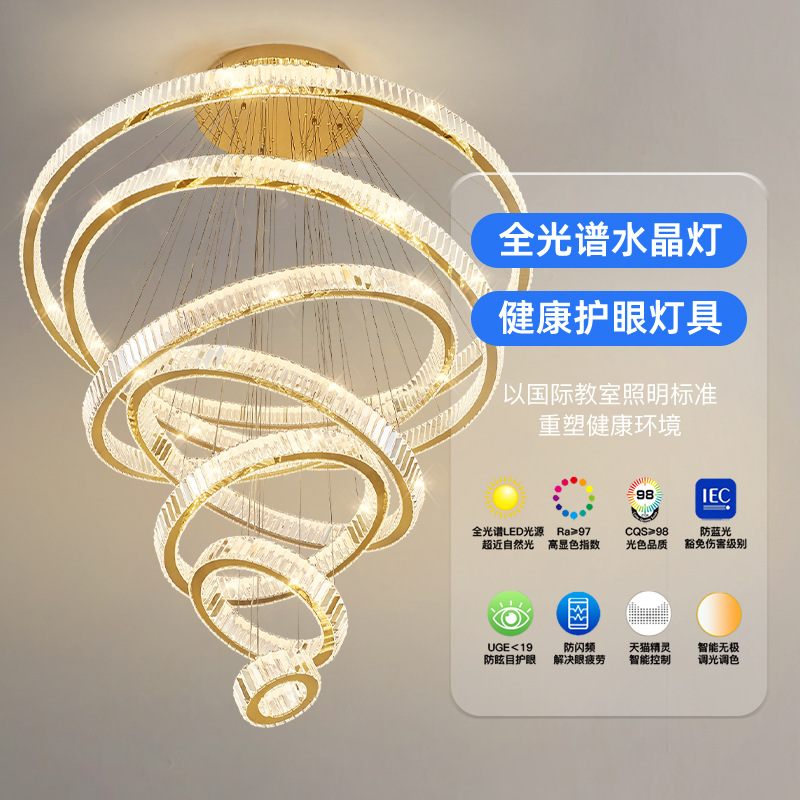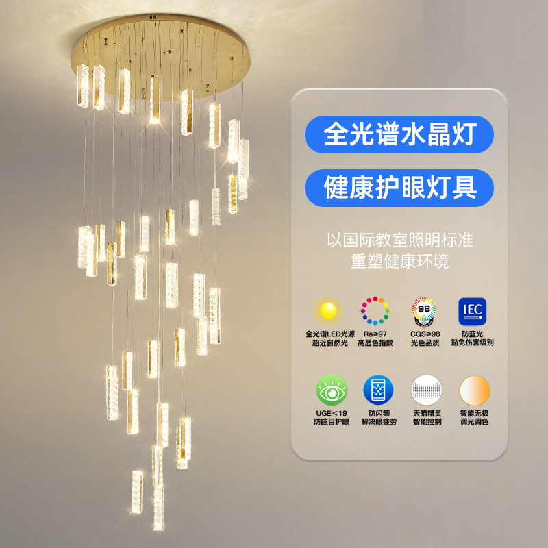 ヴィラクリスタル大型シャンデリアリビングルームランプ雰囲気ダイニングルームシャンデリアライト高級クリスタルランプ階段ランプシャンデリア卸売照明