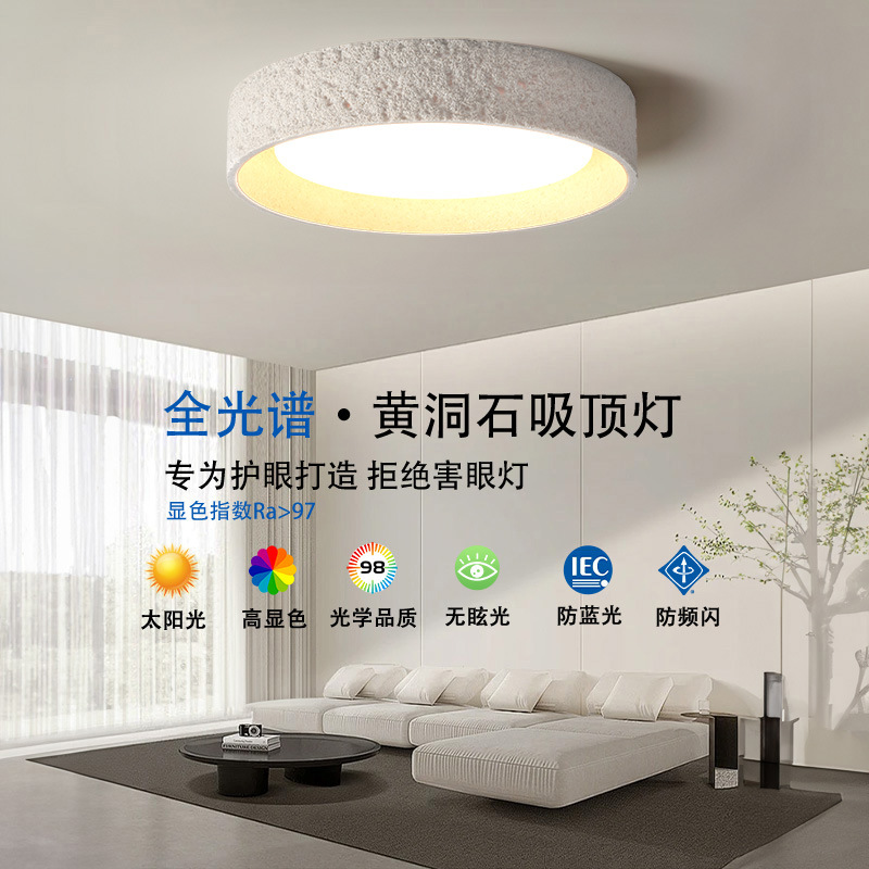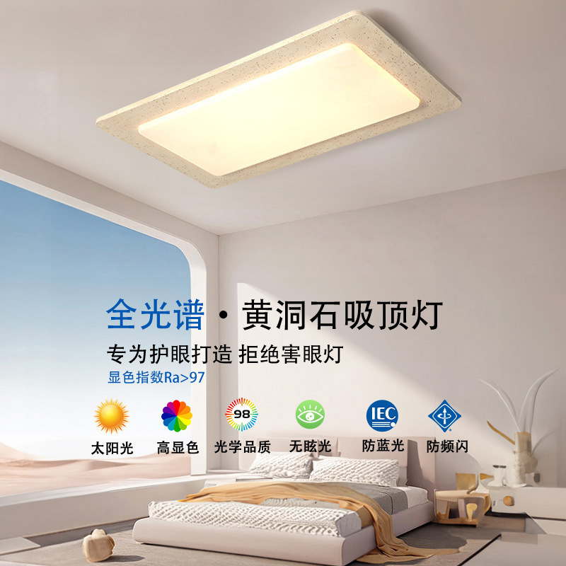 イエローホールストーンクリームスタイルリビングルームシーリングランプ長方形ハイエンドメインライトフルスペクトルわびさびスタイルレトロランプ