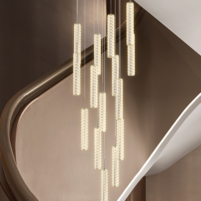 デュプレックスクリスタルシャンデリアライト高級リビングルームヘッドライトクリエイティブパーソナライズされた波型ヴィラ階段ロングシャンデリア新しいスタイル
