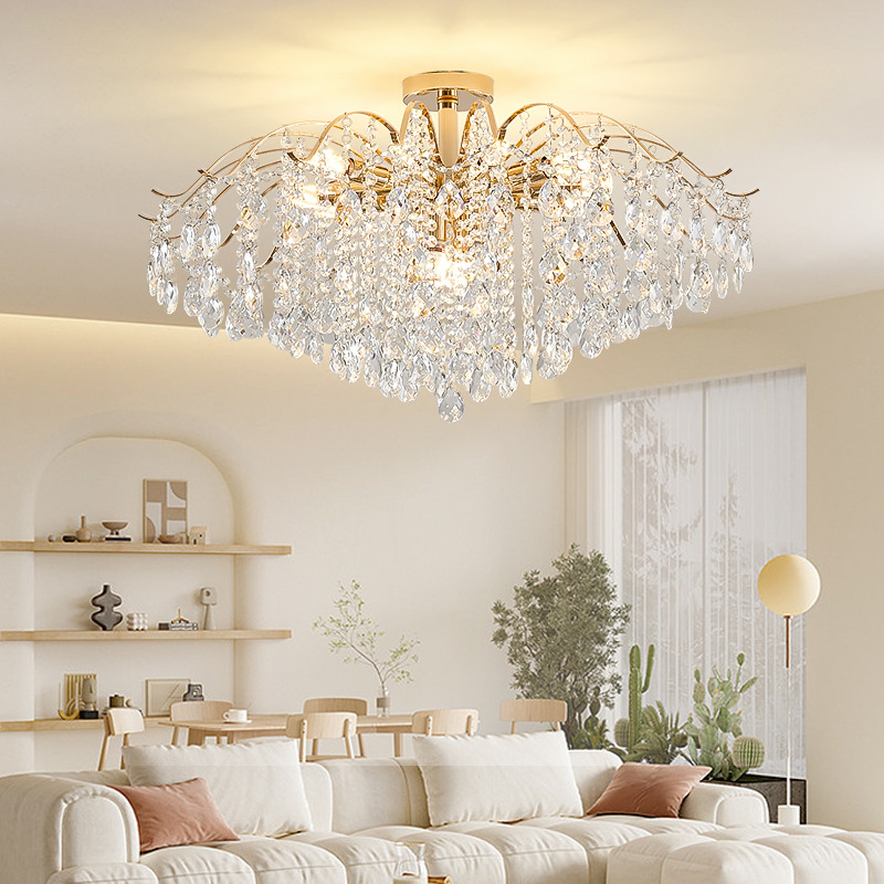 モダンライト高級クリスタルシーリングランプクリエイティブ2025新しいリビングルームシャンデリア寝室シンプルなフルスペクトル目の保護ランプ