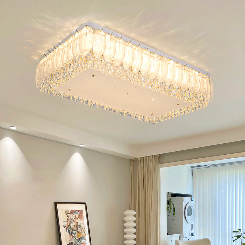 ライト高級シャンデリア、ハイエンドで雰囲気のあるリビングルーム、ホテルロビー、デュプレックスヴィラ階段、多層フェザークリスタルガラス照明器具