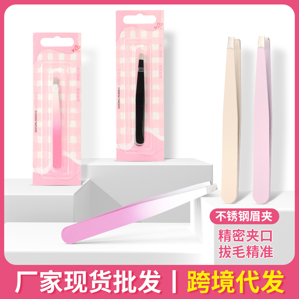 ステンレス製の斜め眉毛クリップ、包装付きのタイトな毛抜きクリップ、眉毛整形用の平口眉毛ペンチ、スプレー塗装眉毛クリップピンセット