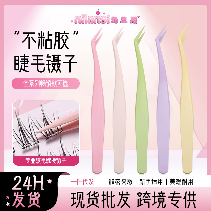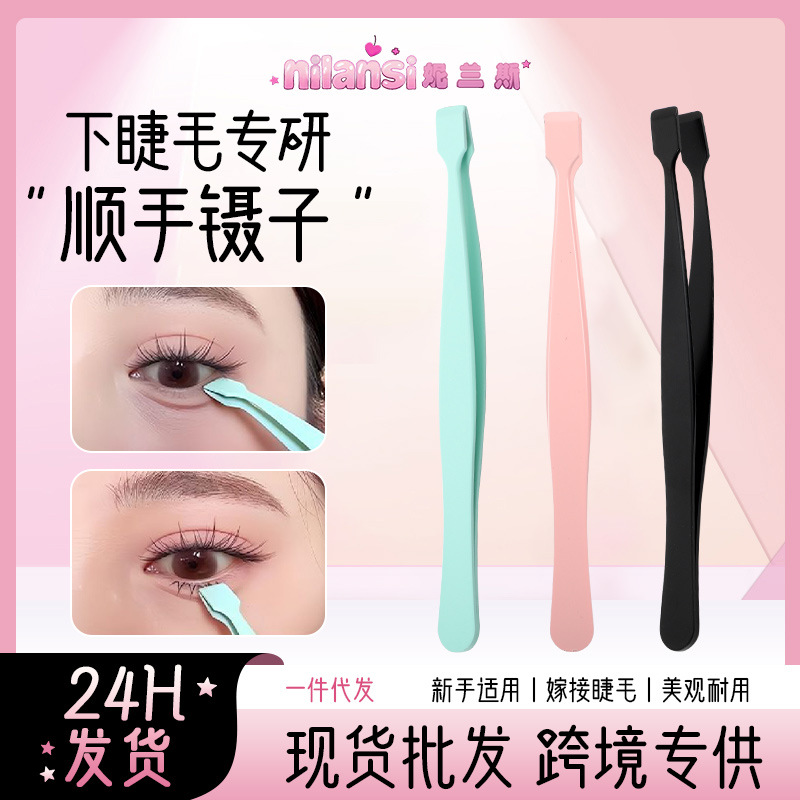 下まつげ用の滑らかなピンセット、接着剤不使用の初心者向けの特別な平頭ピンセット、下まつげ移植用のポータブルまつげピンセット