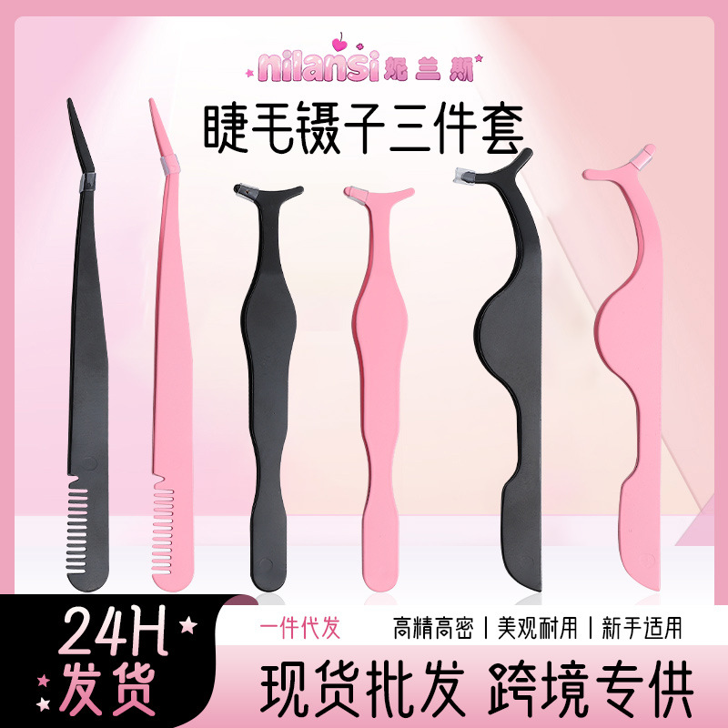 クロスボーダー眉毛クリップ、つけまつげ補助具、まつげ移植クリップ、美容ツール、タツノオトシゴクリップ、コーム付きまつげピンセット