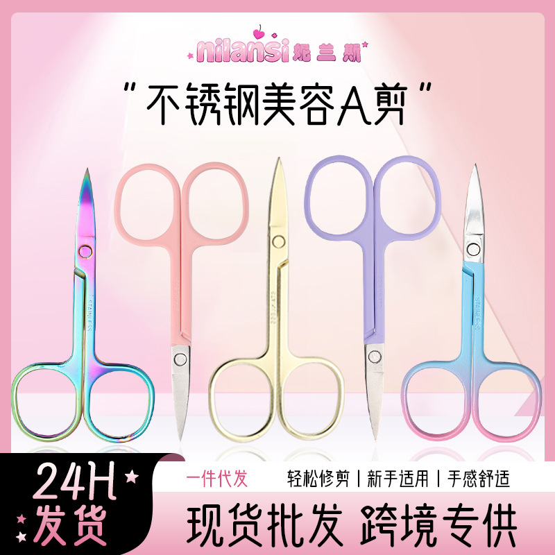 ステンレス眉毛はさみ、眉毛トリミングはさみ、ひげはさみ、丸頭鼻毛はさみ、美容はさみ、メイク専用はさみ、美容はさみ
