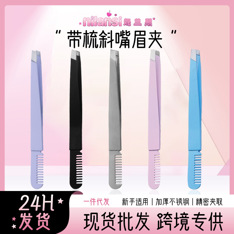 斜め口眉毛クリップ、テールコームピンセット、両頭精密ひげ抜き、眉毛抜き、ステンレス製プロ眉毛クリップ