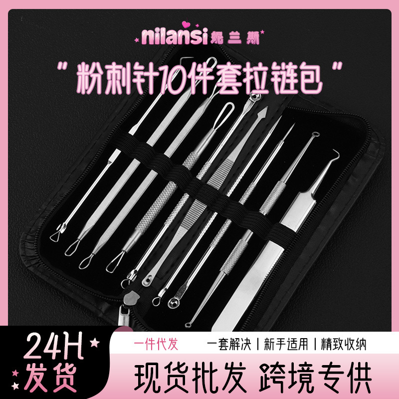 ステンレス製ニキビ針10本セット ニキビ除去・閉じたニキビ解消ツール 美容院専用クリーニングツール ニキビ押し出し針セット
