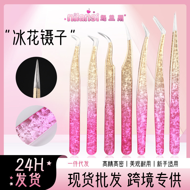 スポット卸売まつげピンセット高密度つけまつげ移植まつげツールステンレス鋼アイスフラワーマツエククリップ