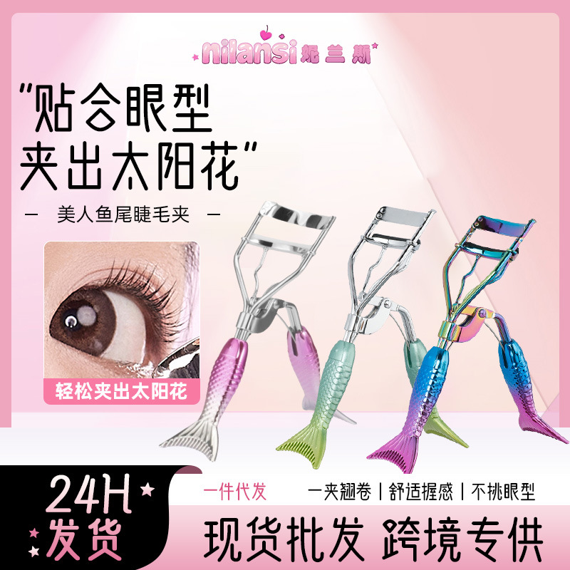 ステンレスまつげクリップマーメイド尾巻き太陽花携帯自然美化粧神器まつげクリップ