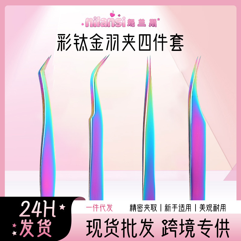 金羽つけまつげピンセットセット、まつげアーティスト専用美容ツール、ステンレス製高精度まつげピンセット