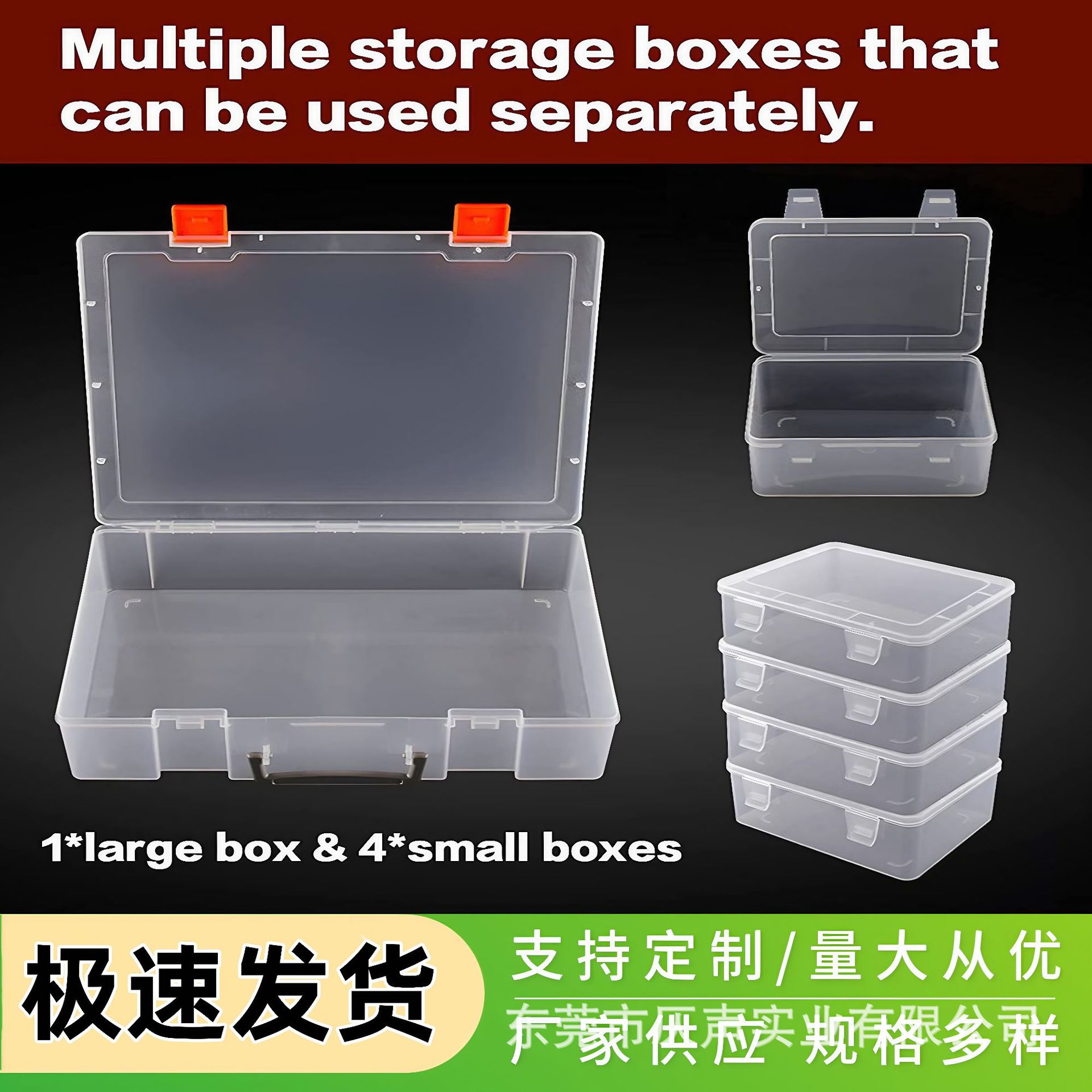手持ち角型高透明蓋付きPPプラスチックケース部品箱アクセサリー道具玩具収納整理箱
