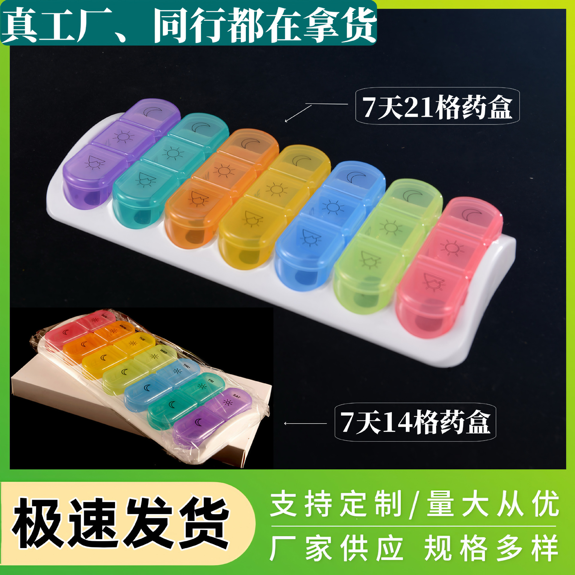 工場卸売り七彩小条一週間七日二十一格薬箱トレイ金収納貯蔵薬箱携帯貯蔵