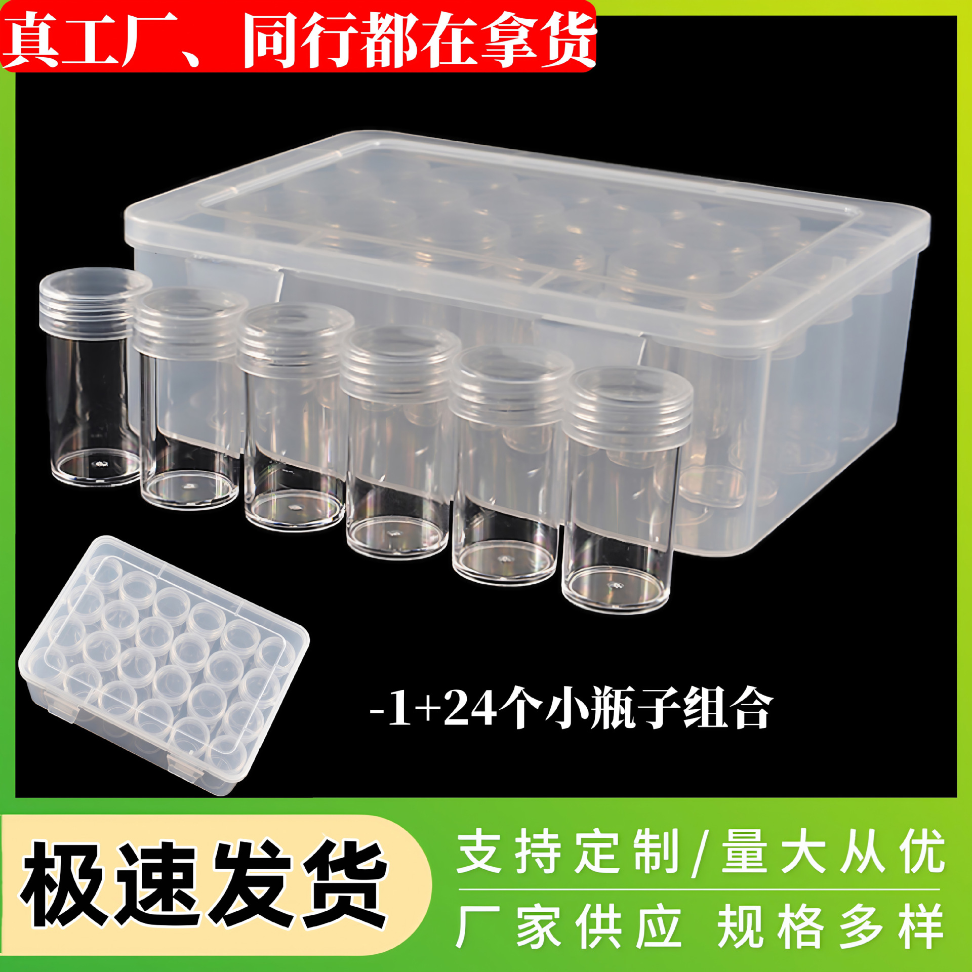 ダイヤモンド塗装ラウンドボトルピル収納ボックスプラスチックボックスボトル新しいラウンドスクエアダイヤモンドビーズ収納pp包装ボックス
