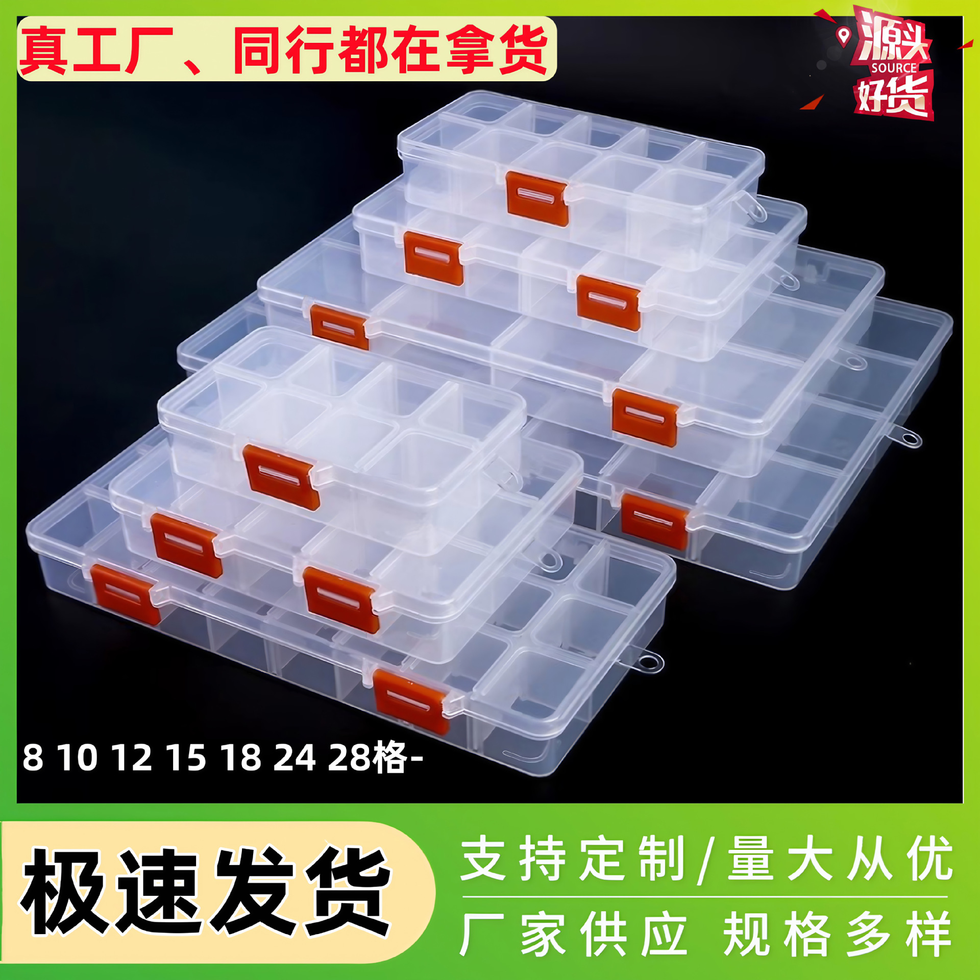 透明な仕切り付きプラスチック収納ボックス 8 10 12 15 18 24 28グリッド ボタン、小物、スナック包装ボックス
