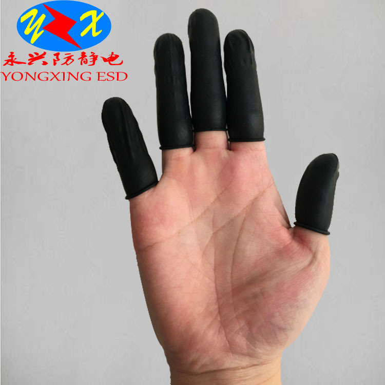メーカーは無粉黒色静電気防止指ラテックスゴム防塵防油耐摩耗性無塵指カバーを提供している