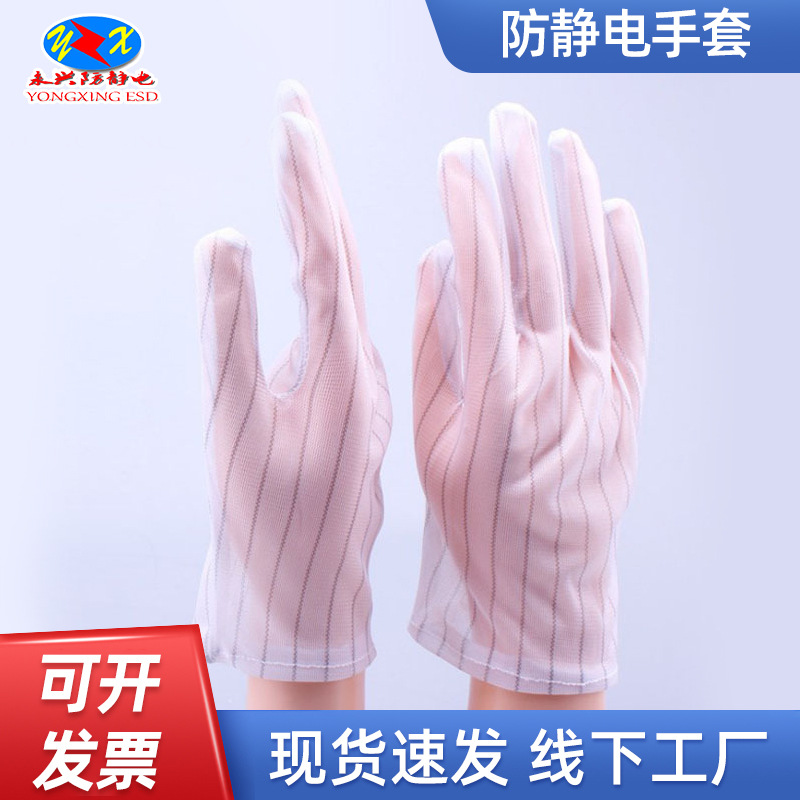メーカー卸売り静電気防止超音波手袋両面ストライプ静電気防止ダブルストライプ五本指プレス手袋