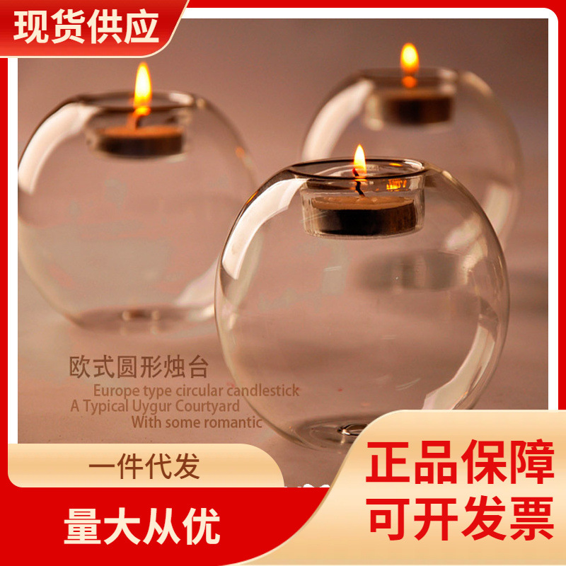 DHZ透明ガラス燭台ヨーロッパ式ガラス円形燭台家庭装飾置物ガラス工芸品ブロー製
