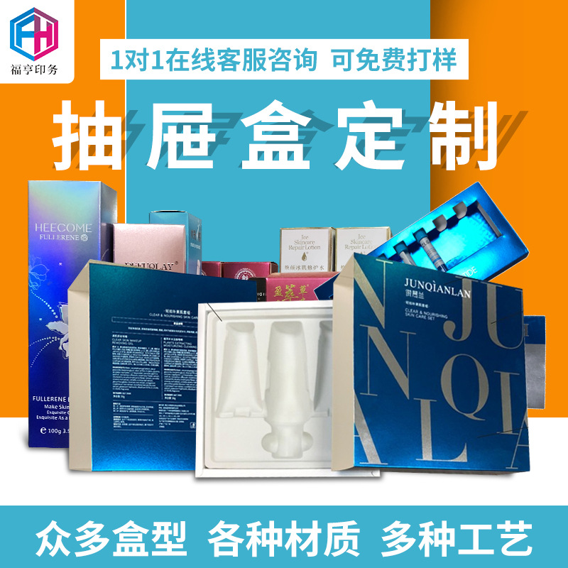 工場生産販売天地蓋保健品箱ゲル引き出し箱化粧品セット箱精油箱印刷ロゴ
