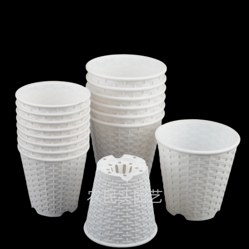 卸売りは吉牌のプラスチックになります。陶磁器の蘭の植木鉢に似せて、白いプリントの鉢を厚くします。